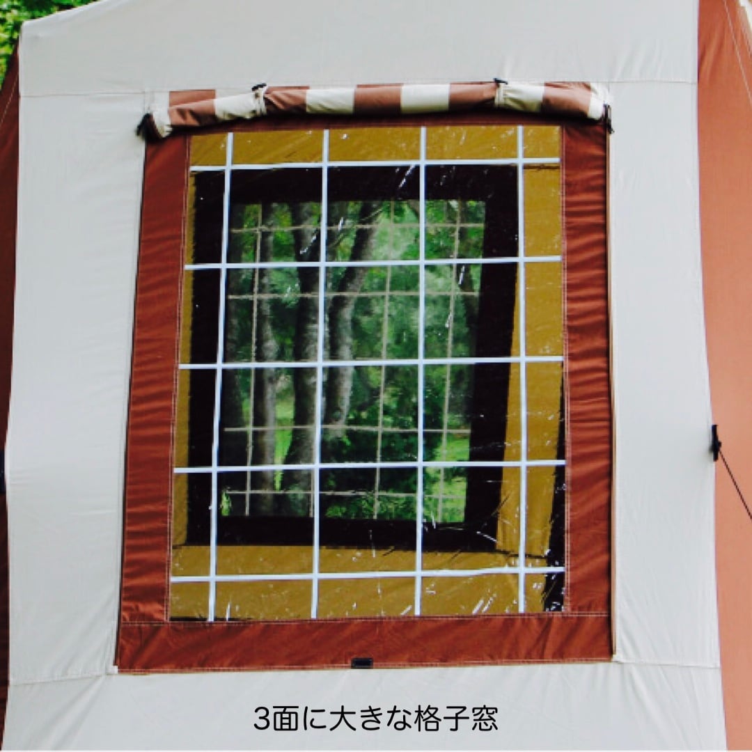 ・前面・両サイドの3面に格子窓。