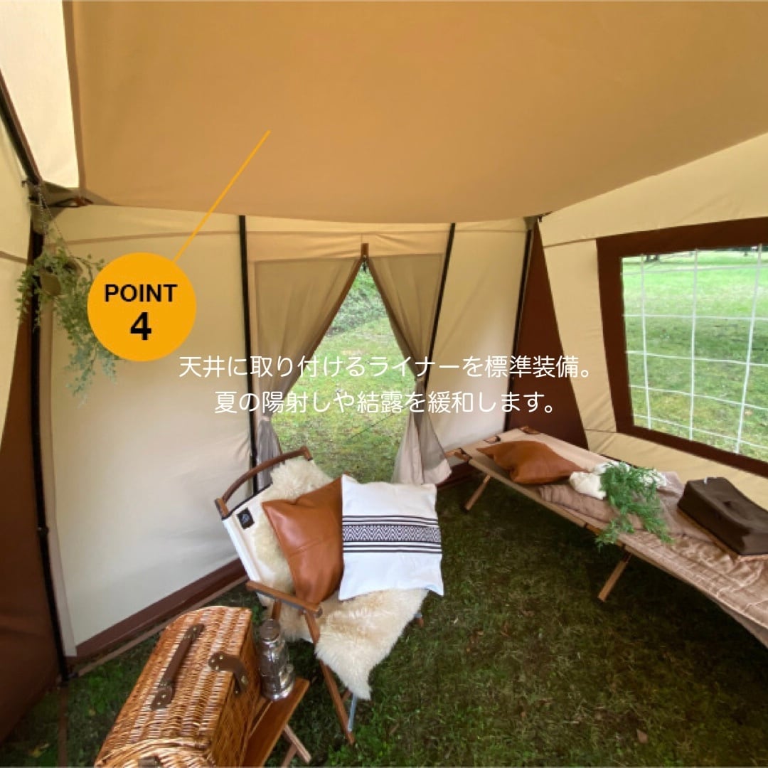 ・前後の出入り口でテント内はとても明るく開放感たっぷり。全方向の景色を楽しめます。