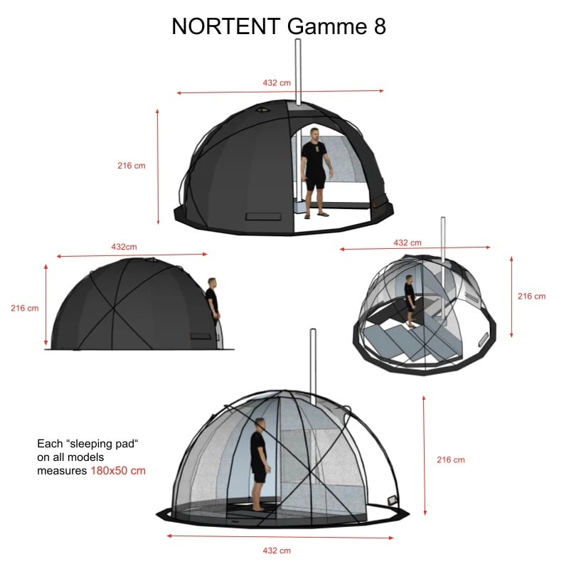 Gamme 8は、最大8人が快適に過ごせる広さと、極限環境に耐える強靭な構造を兼ね備えた4シーズン対応テントです。ファミリーやグループでのキャンプはもちろん、冒険や遠征においても頼れる「移動式キャビン」として設計されています。