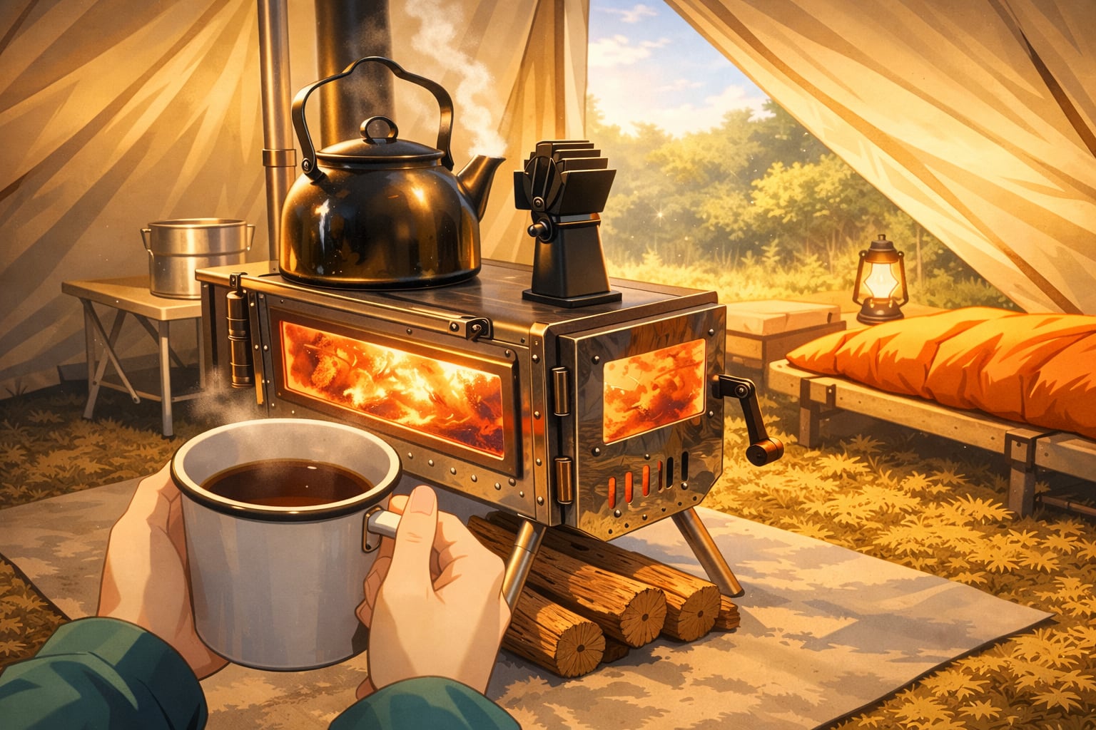 ※テントと薪ストーブ以外の寝具・調理道具などのキャンプ道具は含まれていません。